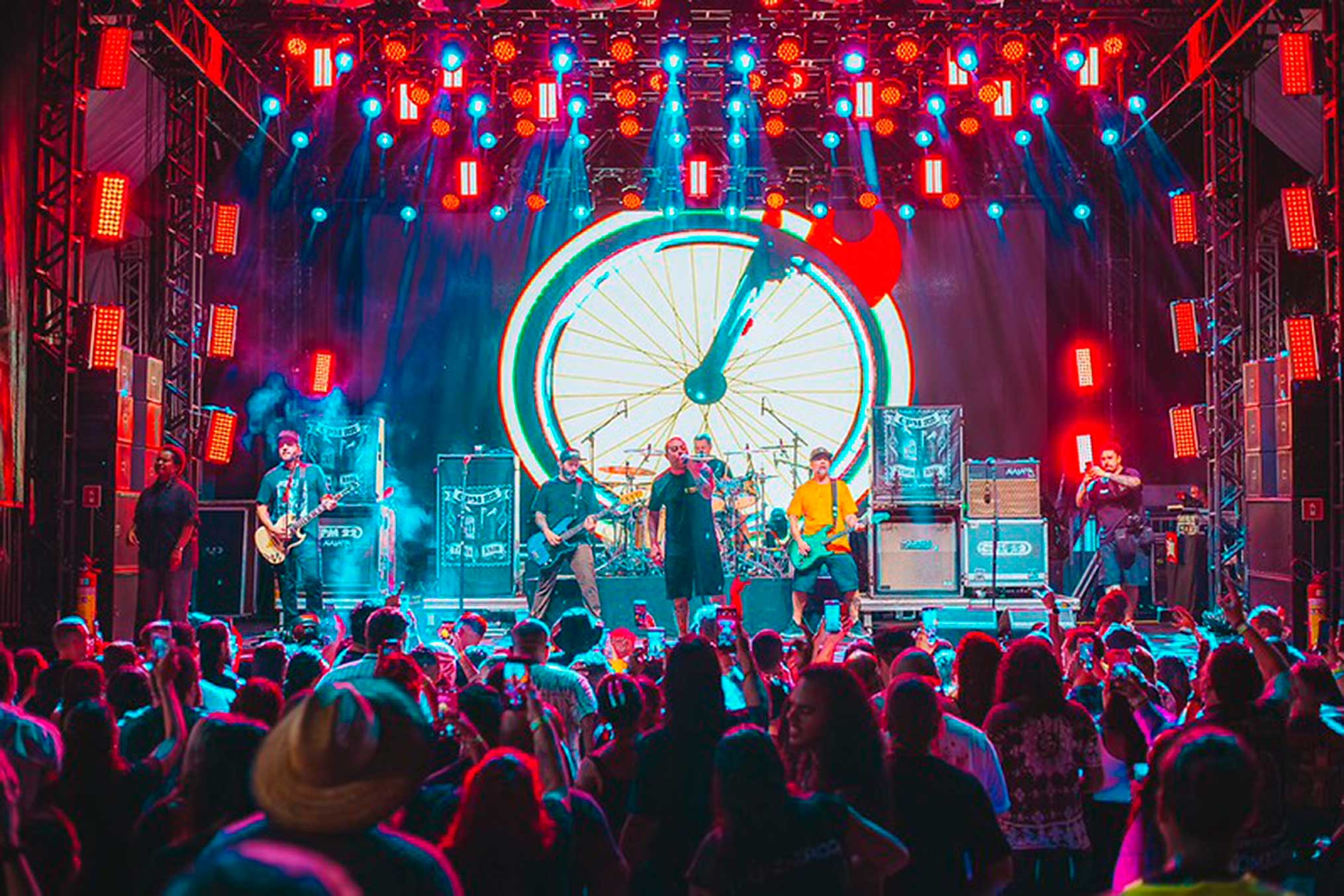 Durante a apresentação, o vocalista Fernando Badauí comentou sobre o retorno da banda à cidade após o adiamento de um show anterior. O repertório reuniu músicas conhecidas do grupo, como “O Mundo Dá Voltas”, “Um Minuto para o Fim do Mundo” e “Dias Atrás”, além de faixas do projeto audiovisual “30 anos”, que celebra a trajetória da banda.