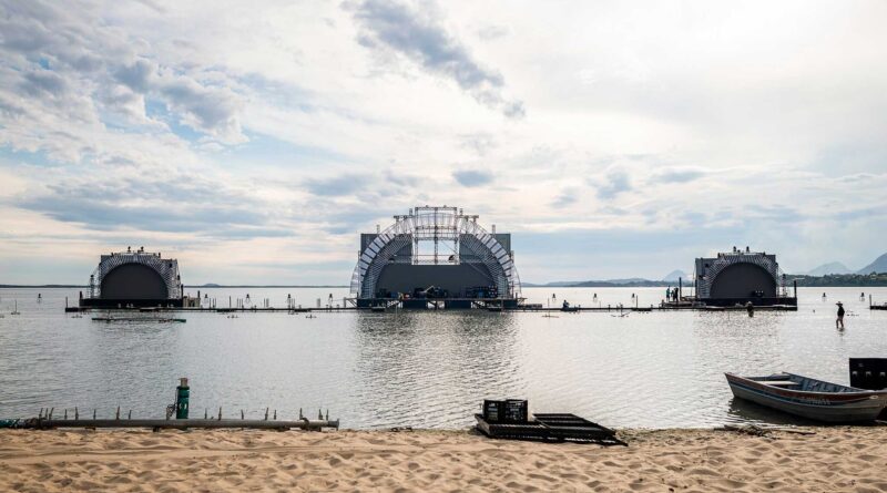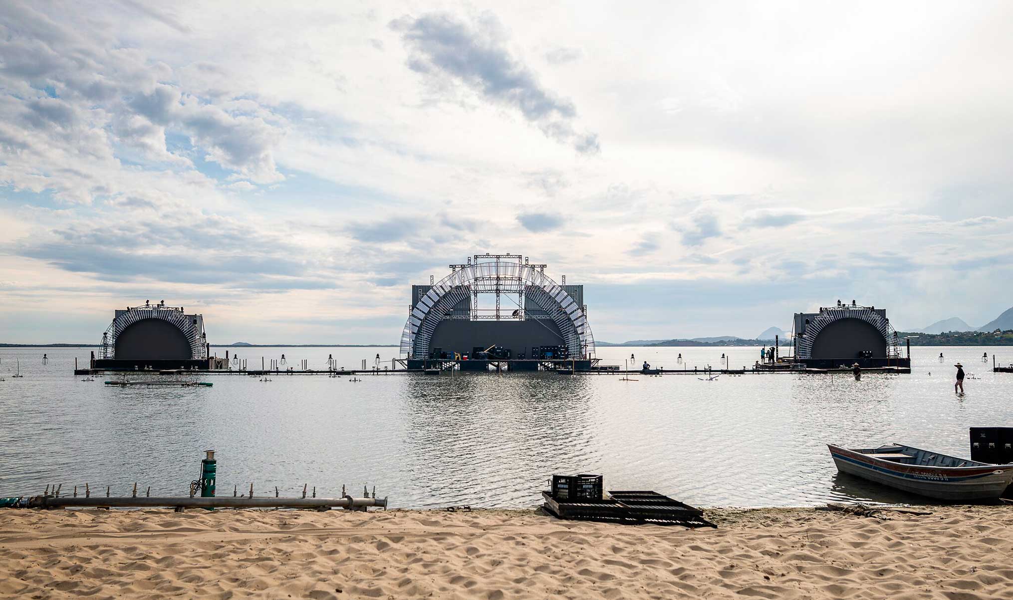 Em Araçatiba — onde acontecem os desfiles oficiais — três telões foram posicionados sobre a lagoa para a apresentação do espetáculo “Águas Dançantes”, previsto para ocorrer após os desfiles e com duração aproximada de 20 minutos. O local também será polo de artesanato e saberes tradicionais, reunindo produções de artesãos e referências culturais de matriz indígena.